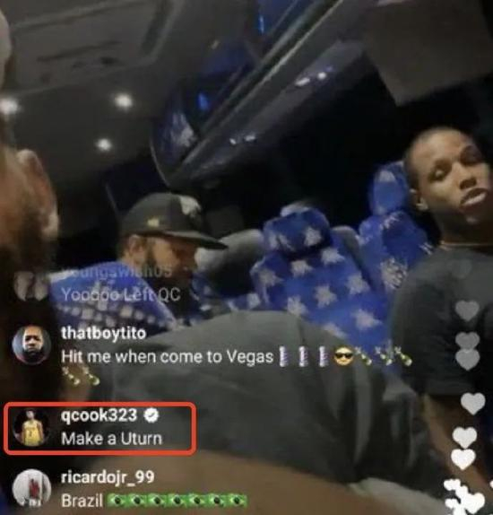 然而这一环节却闹出了乌龙,球队把库克抛弃,大家都乘坐大巴离开了。结果库克在JR的直播间留下两条评论:“快点掉头”、“什么鬼!赢了总冠军难道还要我自己走回去?”