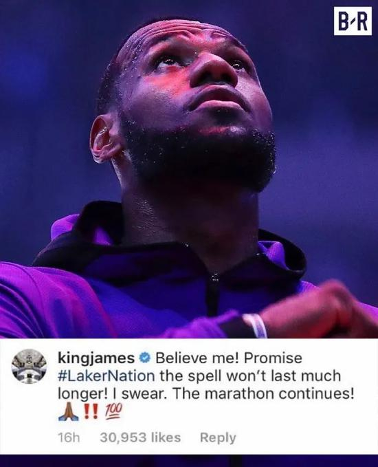 去年三月,当詹姆斯因为腹股沟受伤,球队早早就宣布失去了季后赛资格后。老詹对所有人说:“相信我!我保证黑夜不会笼罩我们湖人国度太久!”