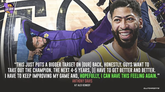 为什么我们这么笃定浓眉会继续与湖人签订合同呢?昨天,在库克的直播中,浓眉表示:“我们马上会再来一年。”他还说:“未来四五年,我要变得更强大,继续提升自己,希望我能再次感受夺冠的滋味!”