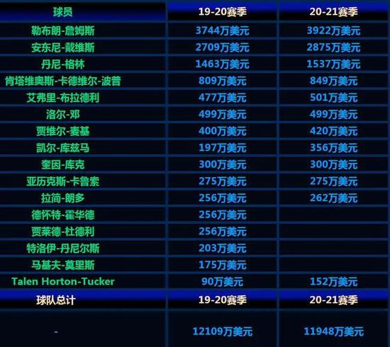 詹姆斯下赛季年薪3922万美元保罗4136万美元浓眉跳出后的起薪是3270万美金(工资帽还是1.09亿)算上邓的500万死工资