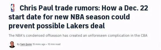 CBS体育专家萨姆-奎因撰文表示根据联盟薪资配平原则湖人要得到保罗至少要配平他的薪水的80%保罗下赛季的薪水是4135.8万美元80%就意味着是3308.7万美元