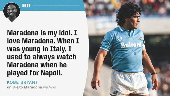 “马拉多纳是我的偶像,我爱马拉多纳,年少时在意大利,我经常看马拉多纳踢球,当时他在那不勒斯。”科比说道。