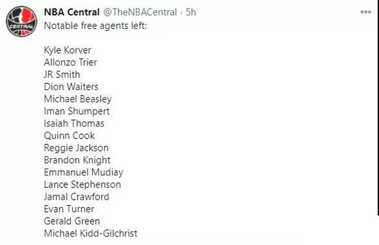 美媒NBA Central列出了自由市场中,还值得关注的十六位自由球员。他们分别是:科沃尔,特里尔,JR,维特斯,比斯利,香波特,小托马斯,库克,雷吉,布兰登赖特,穆迪埃,师弟,克劳福德,杰拉德。格林以及MKG。