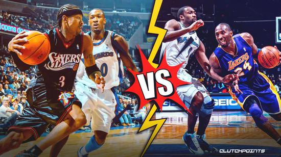 纵观00世代NBA的历史,科比与艾弗森一定是绕不过去的两个名字,在世纪初期的论坛上两人拥有着数量巨大的粉丝,同为分卫的二人自然处处被拿来对比,时至今日,仍然会有人发文:艾弗森和科比究竟谁更难防?