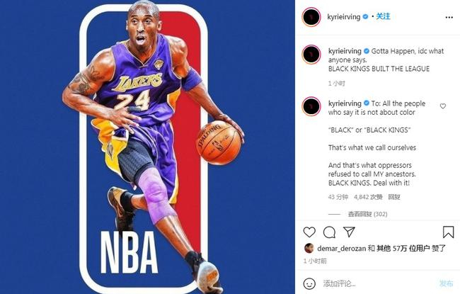 “这必须发生,我不在乎别人说什么。黑人国王打造了联盟。”欧文在IG上写道。