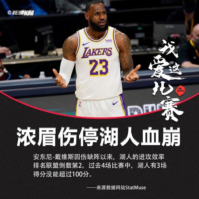 本场比赛湖人全场仅得到89分,这是他们过去4场比赛里第三次单场得分没有破百,而据美国媒体统计,自浓眉哥受伤以来,湖人的进攻效率已经跌到了同期联盟倒数第二。