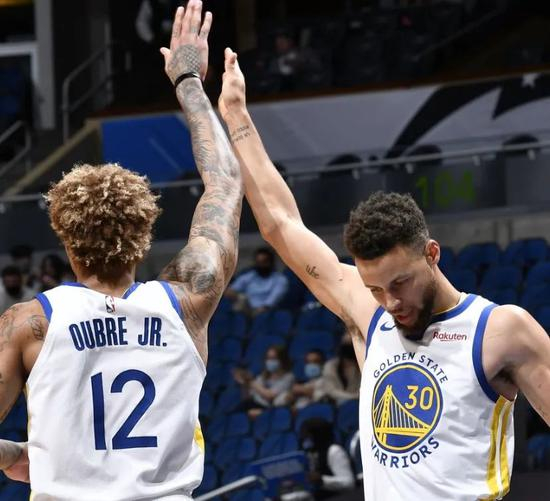 勇士这套阵容如今的化学反应是越来越好了。先是库里、追梦和乌布雷打出配合,由乌布雷扣篮终结,之后维金斯单挑迈尔斯-特纳,一步过掉后扣篮打进,这球吓得库里都抱头了。