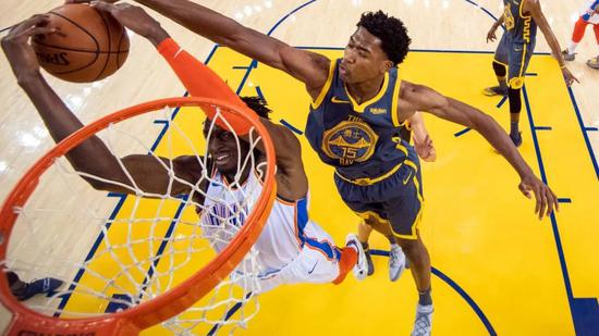 再加上琼斯投篮糟糕,大学时罚球命中率只有五成,顺位下跌也就不奇怪了。他体重110公斤,篮板能力一般,缺乏进攻手段,属于吃饼型的瘦长内线。2016-17赛季,菜鸟琼斯在勇士没有得到什么机会,他大部分时间在发展联盟度过。
