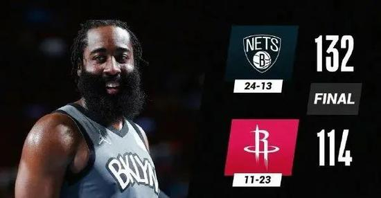 登哥对老东家没有手下留情,从一开始就发狠,不仅自己内突外投砍分,还频繁助攻队友得分。在杜兰特缺阵的情况下,哈登越来越有临时领袖的风范。最终篮网132-114轻取火箭,送给后者13连败。