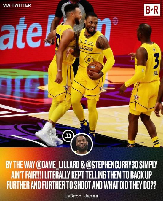 詹姆斯对此发推装得一手好B:“顺便说一下,利拉德和库里,绝对不公平!实际上,我一直在告诉他俩可以越投越远,结果他们做了什么?完全照做了!”