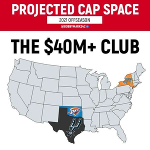 北京时间3月13日,据美媒数据统计,在2021年休赛期,圣安东尼奥马刺、俄克拉荷马雷霆以及纽约尼克斯,这三支球队拥有4000万美元以上的薪金空间。