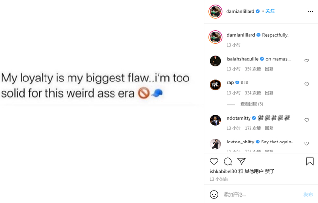 北京时间3月31日,达米安-利拉德更新了社交媒体,他晒出了一张白底图片,上面的文字写的是“忠诚是我最大的弱点,在这个荒诞的时代我过于坚定了。”