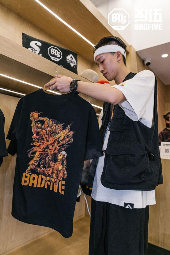 现场陈列的李宁反伍BADFIVE兵不厌诈系列主题T恤、马甲等单品,通过玩味十足的空城计等元素,打造出另类的中国本土街头潮流盛景。