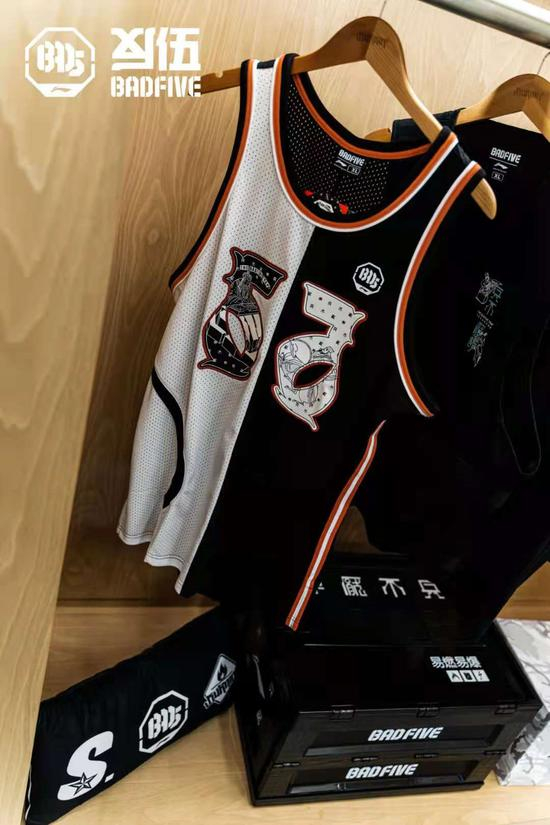 经典反伍比赛套装再升级,上衣前幅采用经典双5造型薄贴布绣印花,内藏“空城计”故事元素;比赛裤则采用经典的反伍BADFIVE文化球裤版型以及高品质网眼面料,使用“SHAMGOD和兵不厌诈”的刺绣点出兵不厌诈主题。