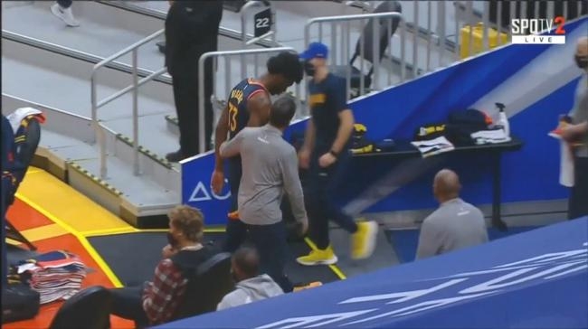 北京时间4月11日,勇士主场迎战火箭。勇士的榜眼詹姆斯-怀斯曼因为右膝盖受伤提前退场,本场比赛不会回归。