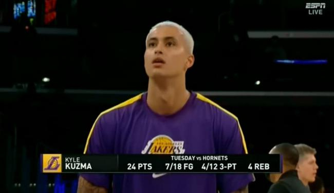 北京时间4月16日,洛杉矶湖人在主场迎来波士顿凯尔特人的挑战。此役,库兹马的新发型引起了美媒的热议。