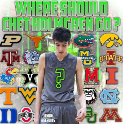 去年的时候,侃球君就预测,各个大学将参与到霍姆格伦的争夺战当中来,果不其然,今年在冈萨加、明尼苏达、俄亥俄州大、密歇根大学、北卡、孟菲斯大学、乔治城大学中,切特-霍姆格伦选择了今年的疯三亚军——冈萨加。