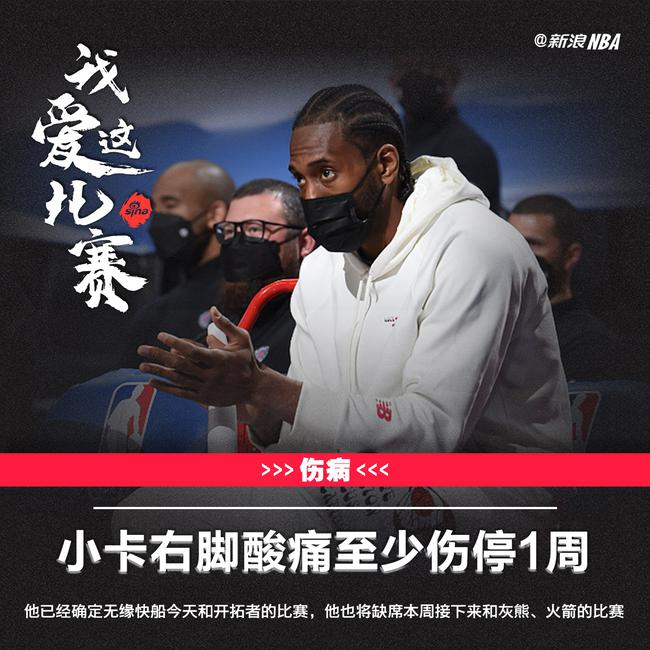 北京时间4月21日,据美媒体报道,快船队宣布考瓦伊-莱昂纳德因为右脚酸痛将至少伤停1周。
