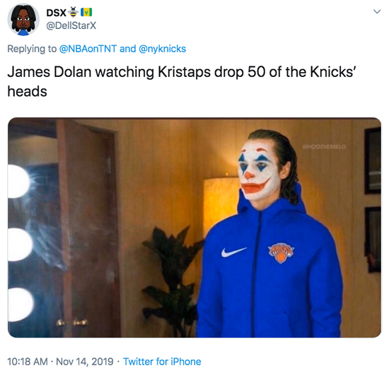 这绝不是对尼克斯队的无端诋毁,尼克斯队球迷自己都能在3分钟内从手机里找出上百张关于尼克斯队的梗图,内容包括了对球队多年来的荒唐交易和失败选秀的无情调侃。