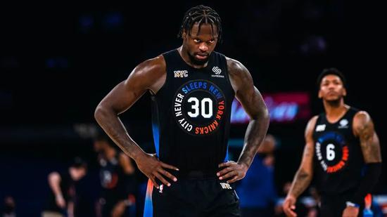 于是我们看到了脱胎换骨的兰德尔,本赛季的兰德尔场均交出24.5分10篮板6助攻,用41.6%的三分命中率扔进2.2个三分球。防守胜利贡献值联盟第二,胜利贡献值联盟第14,球员不可替代值联盟第12,著名数据网站538的修正正负值上他排在联盟第12。兰德尔在纽约承担着詹姆斯,字母哥级别的战术任务,并交出了足矣进入最佳阵容级别的数据单。