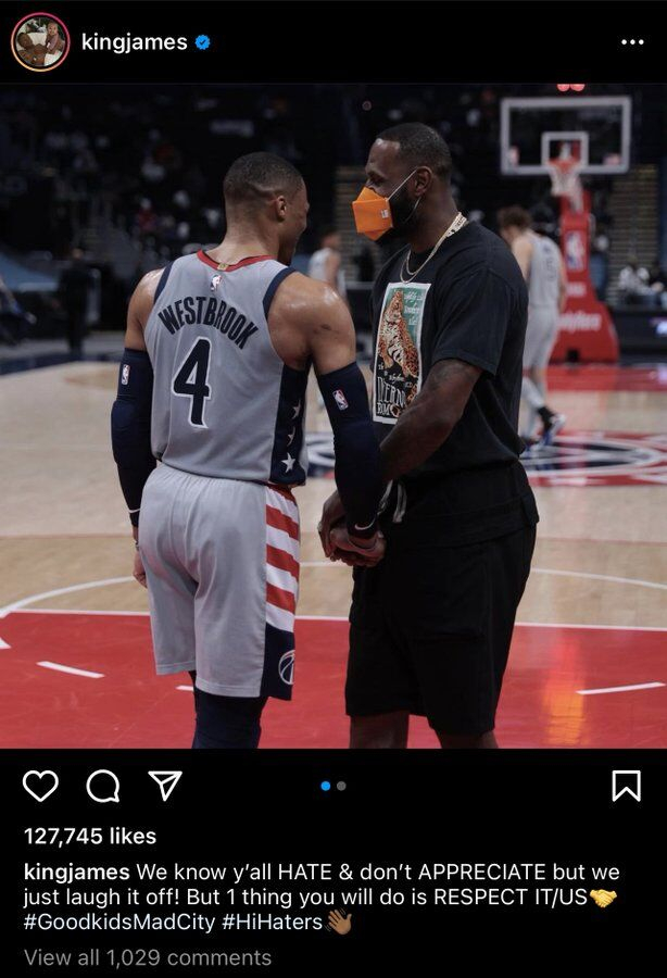 一直以来,威少都受到外界的质疑,而且他的性格与媒体的关系处得不佳。詹姆斯这次通过社交媒体力挺威少,并向他致敬。