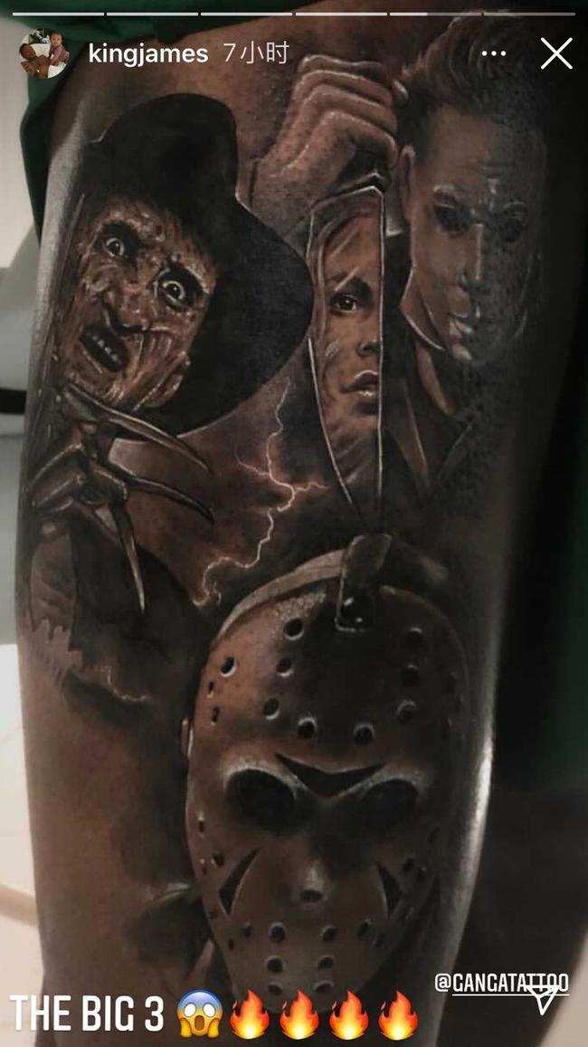 新纹身有点恐怖?詹姆斯晒腿部纹身:三巨头