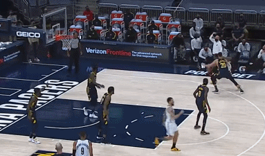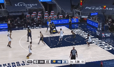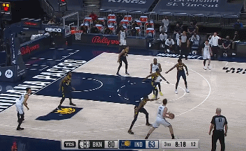 在第三节的死神出没中,步行者的主教练约克伦意识到已经不能用单防面对KD,有趣的一幕出现了: