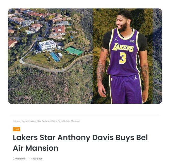 北京时间5月8日,据美媒报道,洛杉矶湖人球星安东尼-戴维斯已经在洛杉矶的顶级富人区(贝莱尔)购买了一套配备篮球场和游泳池的豪宅,值得一提的是,交易价格是3200万美元。