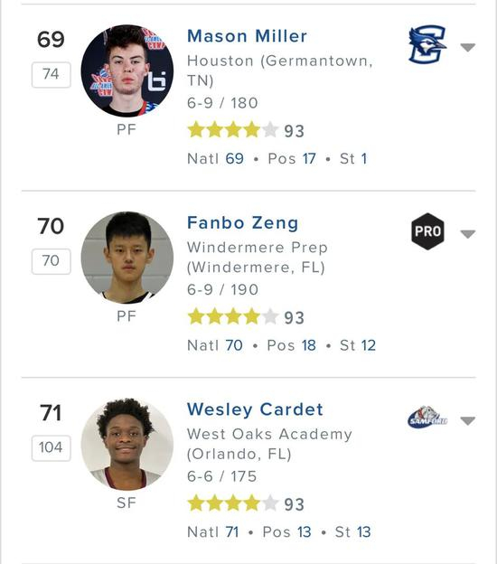 大约一周之前,247sports更新了全美2021届高中生排名,曾凡博排名第70位,大前锋位置排第17位。排名下跌主要有两个原因:1、曾凡博是跳级至2021届,他本来是2022届;2、最近一年小曾都在国内打比赛,并未得到国外媒体太多关注。