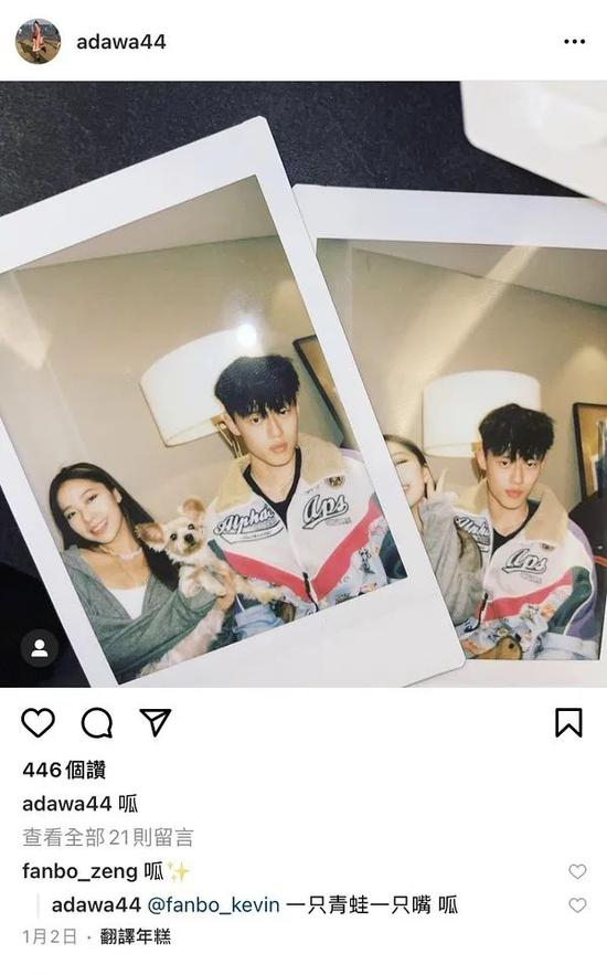 阿达娃写了一个:呱,曾凡博评论了一个:呱(小星星),阿达娃回复:一只青蛙一只嘴,呱。配图则是两个人跟宠物狗狗的合影,隔着屏幕都能感受到恋爱的甜蜜气息。冲上热搜之后,阿达娃把这些合影又隐藏了。
