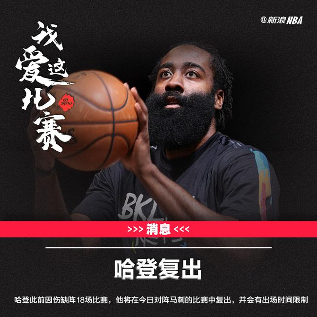 今天,篮网队宣布哈登将在对阵马刺队的比赛中复出,替补出战。