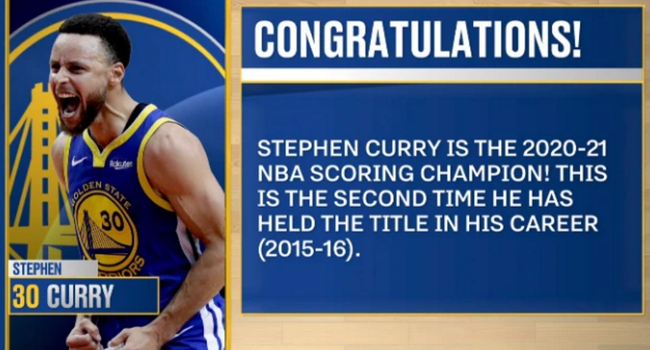 北京时间5月17日,常规赛得分王正式出炉,金州勇士球星斯蒂芬-库里力压华盛顿奇才的布拉德利-比尔当选2020-2021赛季得分王。同时,库里不仅加冕了得分王,他还创造了一项里程碑。