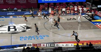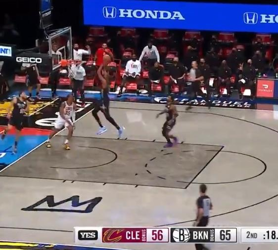 篮网vs骑士,迈克-詹姆斯打板助攻杜兰特空接暴扣。