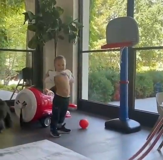 库里已经带坏小孩子!儿子也来模仿他漏胸(图)