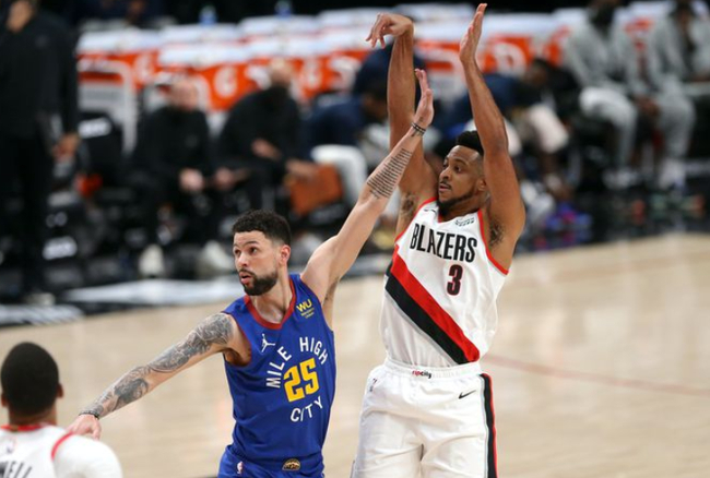 全场比赛,他三分球10投5中,得了21分,在掘金队中仅次于尼科拉-约基奇。