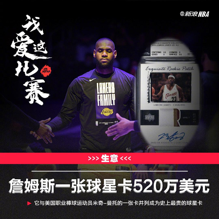 詹皇球星卡价值520万刀历史最贵 第三名竟是他