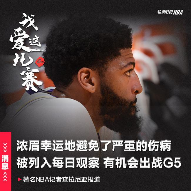 北京时间5月31日,据查拉尼亚报道,由于腹股沟伤势,湖人队首发大前锋安东尼-戴维斯被列入每日观察名单,他依然有机会在首轮第5场比赛中上场。