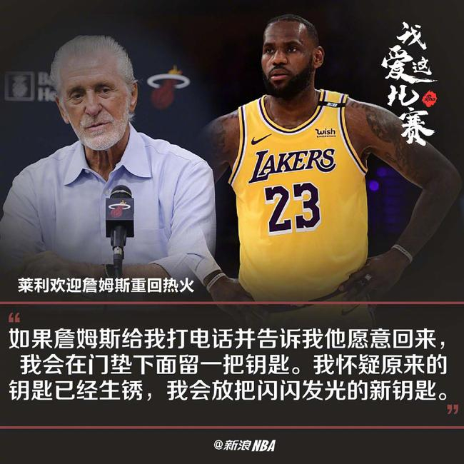 此前做客一档节目时,莱利曾提到詹姆斯。他称如果詹姆斯打电话说要回来,他会将一把崭新的钥匙放在门垫下面。他称詹姆斯是史上最伟大球员之一,在热火效力时期经历了令人兴奋的4年,2次率队夺冠,那堪称热火队史最好的岁月。