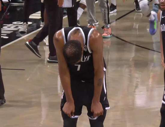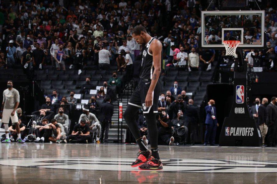加时赛中,杜兰特灯枯油尽,6次出手全部打铁。可谁会去责怪他呢?少了欧文,哈登明显因伤不在状态,这个系列赛他一共出场299分钟,两次打满全场,据统计是2014年以来单轮系列赛上场时间最多的球员。