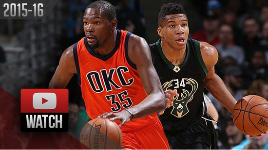 2016年3月6日的一场常规赛,在基德的授意下改打控卫的字母哥,面对雷霆的杜兰特,轰出了26分12板10助的三双表现,而杜兰特则用32分12板8助率领球队104-96击败雄鹿。