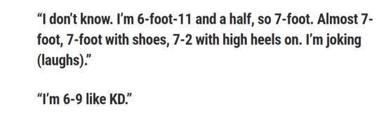 一直以来都把杜兰特视作自己偶像的字母哥那年对着媒体开起了杜兰特虚报身高梗的玩笑,自嘲自己是6尺9寸的杜兰特。