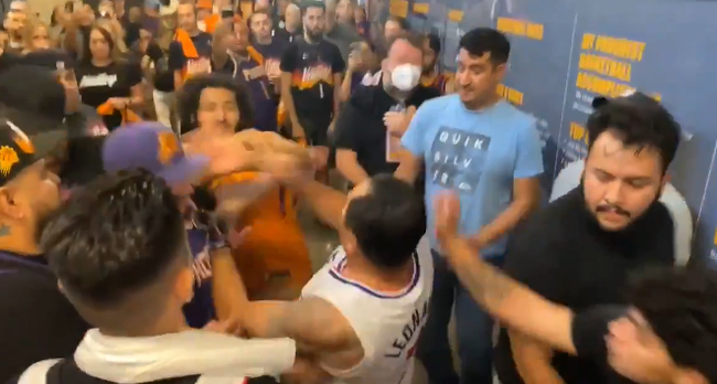 莱昂纳德一拳击中布克 太阳与快船球迷群殴
