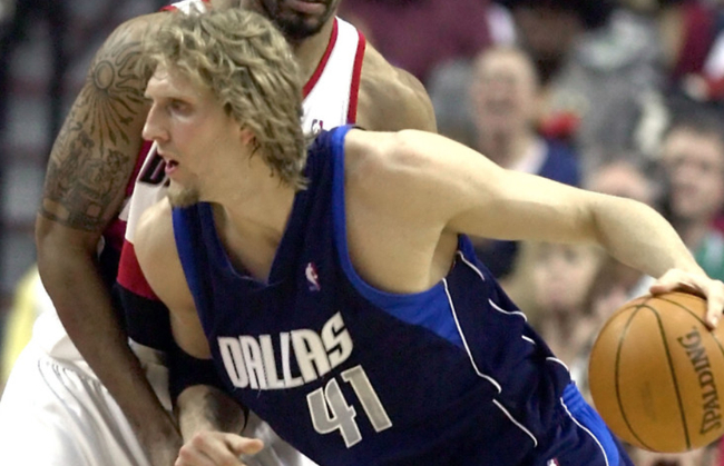 2.德克-诺维茨基,2003年VS开拓者。小牛几乎成为史上第一支0-3领先被翻盘的球队。诺维茨基第四节发威,最后得了31分、11个篮板和3个盖帽。接下来一轮打国王也抢七,诺维茨基得了30分19个篮板。