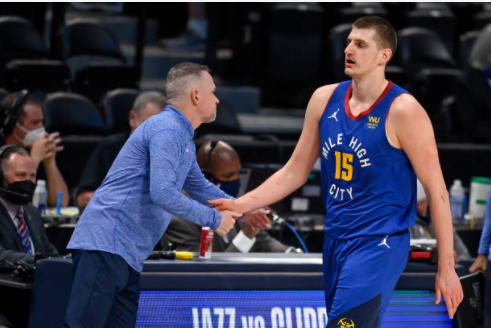 在掘金被太阳0-4横扫的那晚,尼科拉-约基奇和主帅迈克尔-马龙坐到一起,借酒消愁。