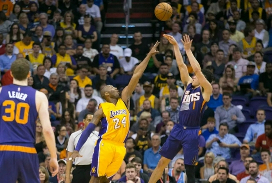 2016年3月24日,科比最后一次做客菲尼克斯。这是他的最后一个赛季,也是布克的新秀赛季。