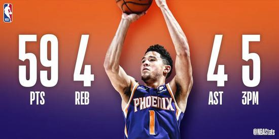 对阵爵士的比赛,布克砍下59分,34投19中,55.8%的命中率。全队一共才得了92分,除了布克其他队友42投12中。28.5%的命中率。布克一个人得了全队64.1%的得分。