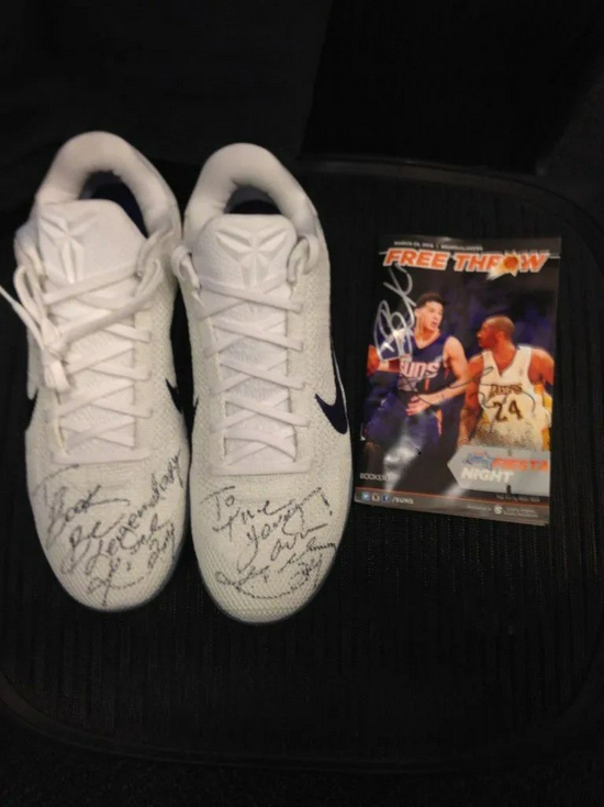 赛后科比拥抱了布克,送上了他当天所穿的球鞋,并在上面题字:“成为传奇吧!”