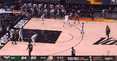 可上半场12投仅4中的布克,在此时扮演了球队的英雄。每当字母哥率队迫近比分,他就能立马给予回应。