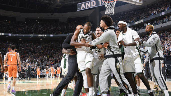 今天的总决赛第四战,布克彻底打疯了,仅仅第三节就7投7中砍下18分。全场比赛布克28投17中攻下42分,雄鹿确实防不住他。可雄鹿自己也有半场进攻中的王牌。
