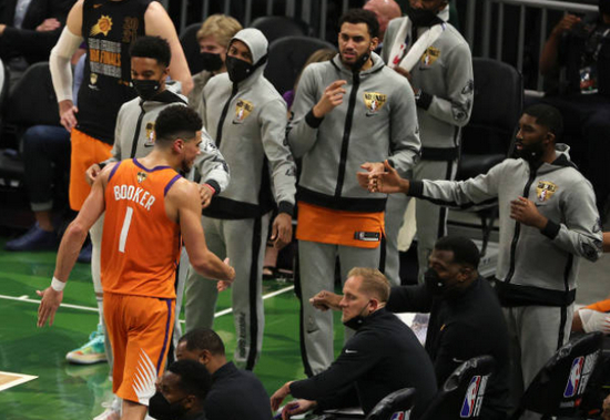 要知道,此役,布克轰下了42分,而上一场比赛他只得到10分。因此,他成为了总决赛历史上前一场得分未超过10分下一场得分最多的球员。
